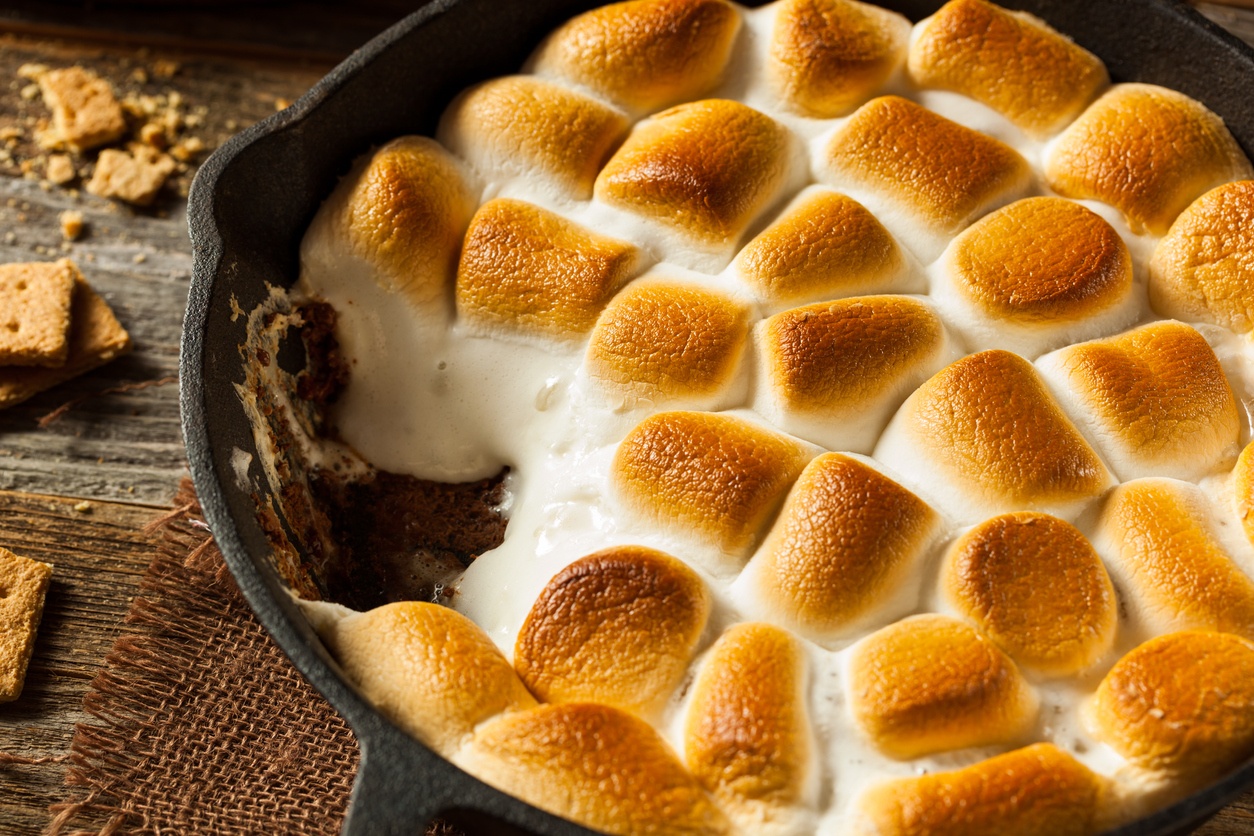 Основной секрет и любимая всеми особенность этого десерта — в расплавленном нежном ванильном маршмеллоу, который склеивает печенье и придаёт десерту целостность. В обычном состоянии маршмеллоу упругий и плотный, но стоит его нагреть — и он тает словно мороженое на солнце, превращаясь в невероятно вкусную и нежную массу. Это именно то состояние, которое нам необходимо.