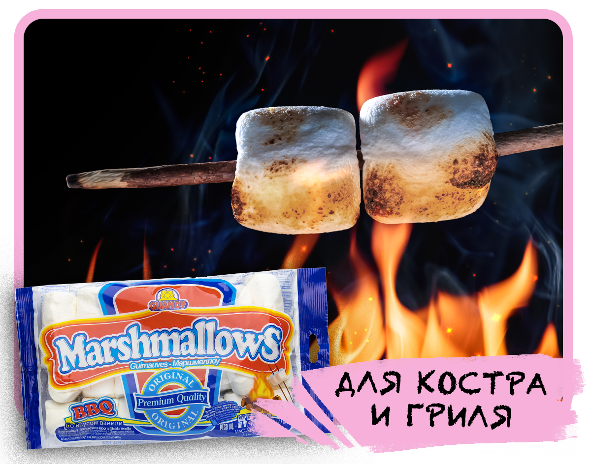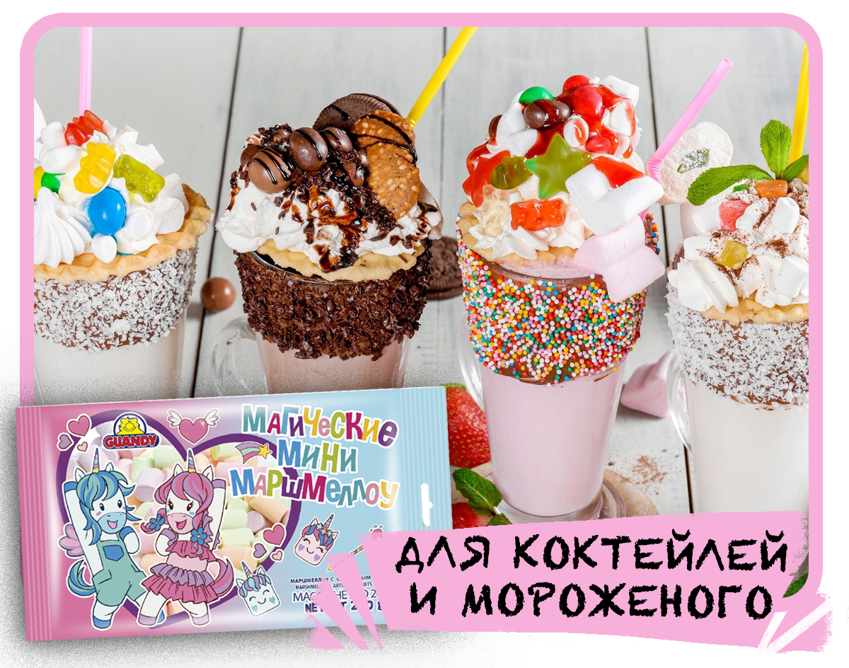Компания ГУАНДИ — лидер во всём, что связано с производством и продажей маршмеллоу — уникального десерта для любых случаев. Маршмеллоу можно жарить на костре и украшать им десерты, надевать на палочки с любимыми фруктами и добавлять в кофе, какао и горячий шоколад, из маршмеллоу делают мастику и глазурь для тортов и куличей, создают сладкие кондитерские букеты и ещё множество вкусных вещей! На странице Состав вы можете подробнее узнать про состав и калорийность маршмеллоу и про его пользу.