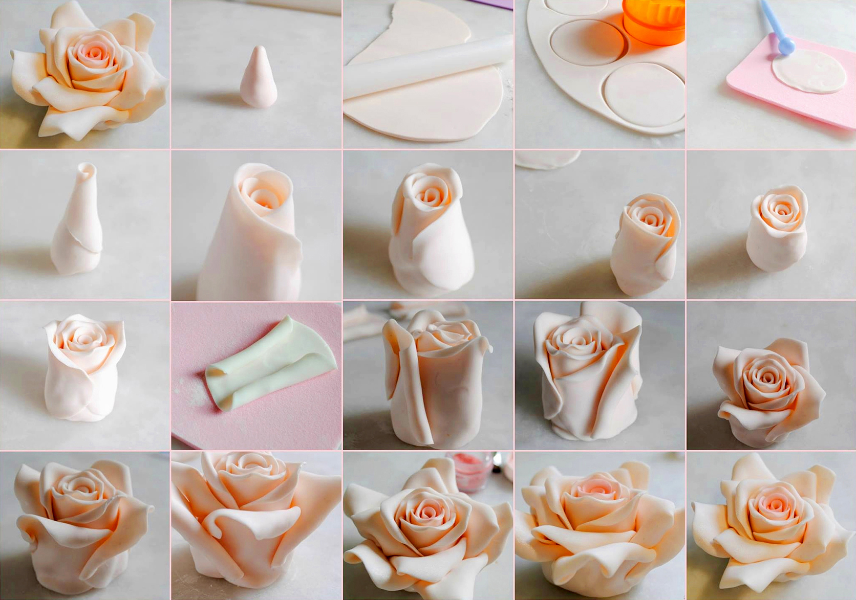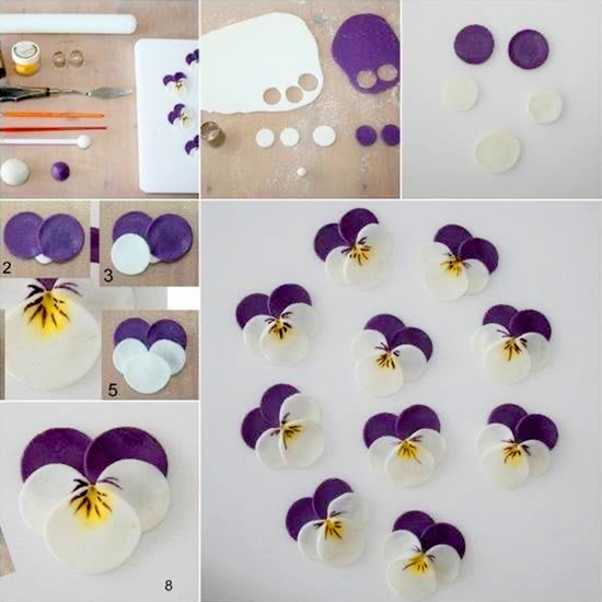 На фото ниже предлагаем вам ещё несколько простых пошаговых способов приготовления цветов из кондитерской мастики: